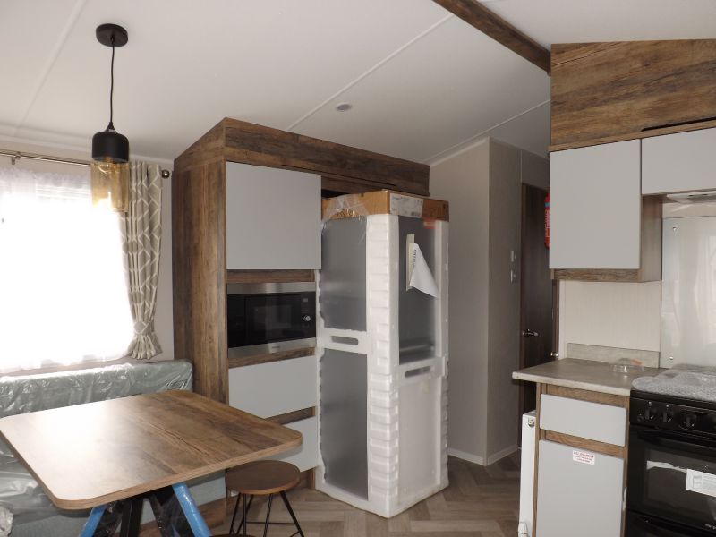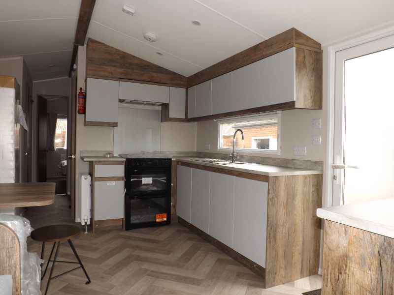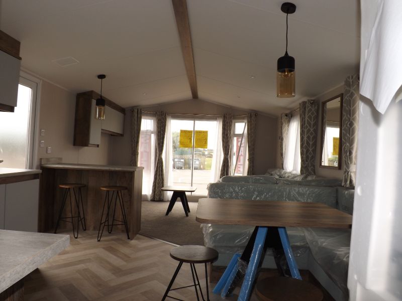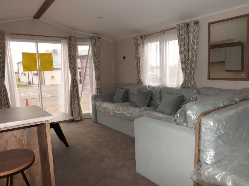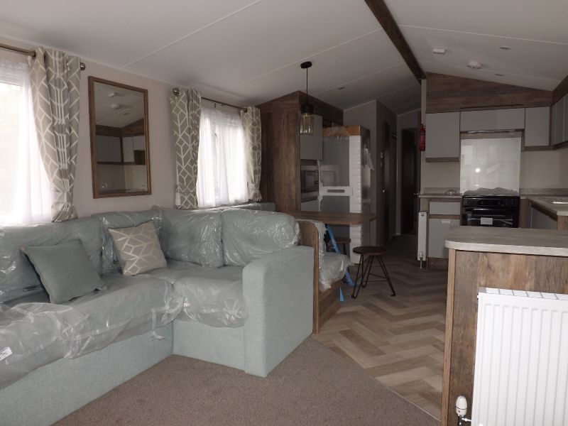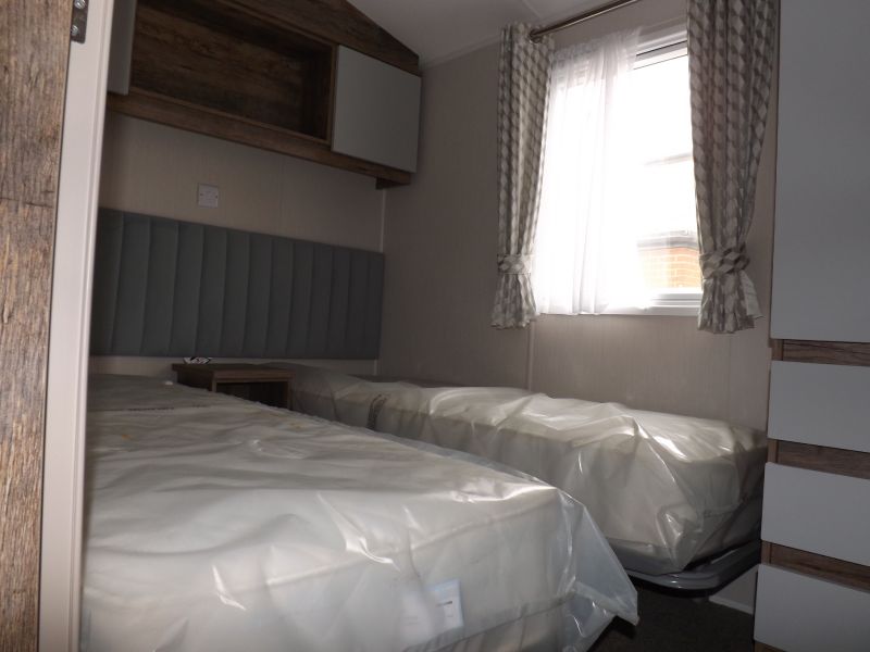 2 bed static caravan holiday home 38ft x 12ft 2022. Home Comforts – Double glazing and central heating. External Finish – Fully galvanized panel (standard). Lounge – Fixed sofa seating, wall mounted tv point, open plan lounge/diner/kitchen, pull out bed, tv unit and USB socket, scatter cushions and a coffee table. Dining Area – Fixed dinette. Kitchen – Recirculating /kitchen extractor fan, 4 burner hob, integrated 70/30 fridge freezer, integrated microwave oven. Master Bedroom – King size bed, wardrobes, bedroom USB socket. Twin Bedroom – Standard single beds and single wardrobes. Bathroom – Shower, WC hand basin and a bathroom externally vented extractor fan. En-Suite – En-suite WC and En-suite hand basin.