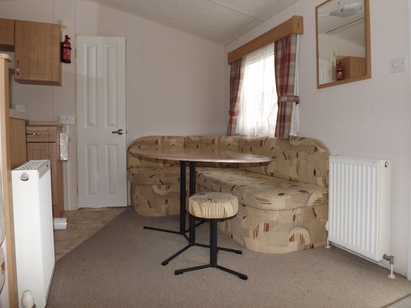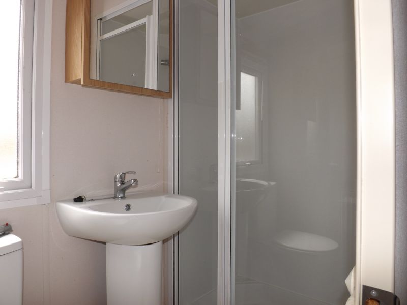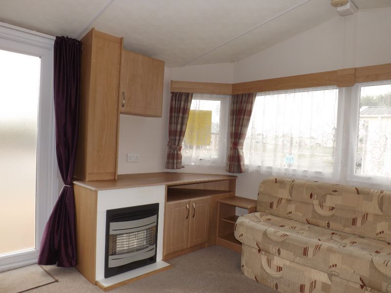 2 bed static caravan holiday home 32ft x 12ft 2012. Home Comforts – Double glazing, central heating with electric fire. Lounge – Fixed sofa seating, wall mounted tv point, open plan lounge/diner/kitchen, tv unit, pull out bed and coffee table. Dining Area – Fixed dinette. Kitchen – Recirculating kitchen extractor fan, 4 burner hob, under counter fridge freezer, full height storage cupboard. Master Bedroom – Double bed, wardrobes, vanity unit/dressing table. Twin Bedroom – Standard single beds, single wardrobe. Bathroom – Shower, WC, hand basin. En-Suite – Hand basin and WC.