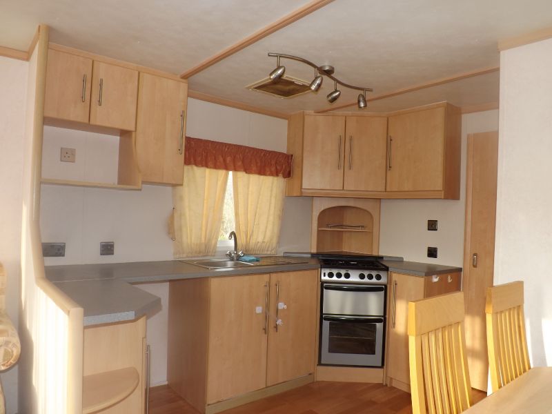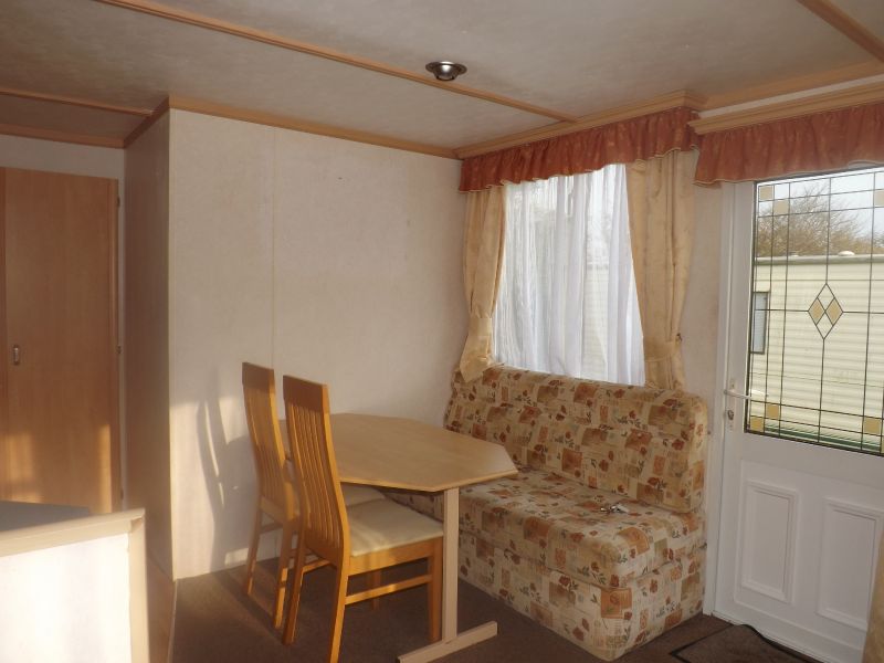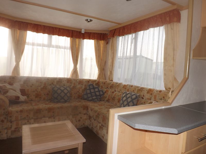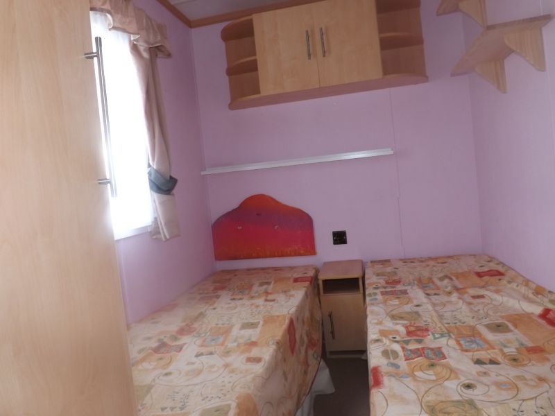2 bed static caravan holiday home 33ft x 12ft 2005. Home Comforts – Gas Fire. Lounge – Fixed sofa seating, open plan lounge/diner/kitchen, tv unit. Dining Area – Fixed dinette. Kitchen – Recirculating kitchen extractor fan, 4 burner hob. Master Bedroom – Double bed, wardrobes, vanity unit/dressing. Twin Bedroom – 3ft single beds, single wardrobe. Bathroom – Shower, WC, hand basin.
